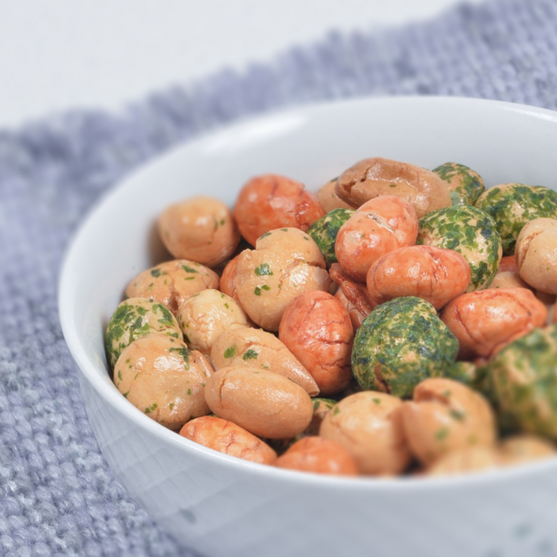 HOME » 芳甘菓豆芳 商品ラインアップ » 豆菓子 芳甘菓豆芳 商品ラインアップ 手むき落花生をはじめ落花生・豆菓子・和菓子など、ギフトや健康的なおやつにピッタリの芳甘菓の商品です。 手むき落花生 落花生 和菓子 豆菓子 甘納豆 加工品・その他 ギフト 季節の商品 芳甘菓豆芳 豆菓子 いろいろな豆を使ったお菓子です。栄養たっぷりのおやつにどうぞ。 磯の香 えび、2種類の海苔(青海苔、刻み海苔)がついた磯の香たっぷりの豆菓子です。 オンラインショップで詳細を見る 海老ピー 海老の風味たっぷりの豆菓子です。 オンラインショップで詳細を見る いかピー 刻みいかがアクセントになり、いか風味が後引く美味しさの落花生豆菓子です。 オンラインショップで詳細を見る 花豆 そら豆を油で揚げて塩で味付けした伝統的な豆菓子 オンラインショップで詳細を見る 塩豆 えんどう豆に貝カルシウムなどをまぶした伝統的な豆菓子です。 オンラインショップで詳細を見る わさび豆 大豆にピリッとわさびと刻み海苔がきいた豆菓子です オンラインショップで詳細を見る 紅梅豆 落花生の周りの衣に、ほんのり梅風味をつけた豆菓子です。 オンラインショップで詳細を見る カレー豆 お子様でも食べられる辛さのカレー味が後引く美味しさの豆菓子。ビールのおつまみやおやつにも人気があります。 オンラインショップで詳細を見る チーズピー 落花生の周りの衣に甘めのチーズパウダーで味付け。やさしい味の豆菓子です。 オンラインショップで詳細を見る 黒御豆 黒豆に白砂糖をまぶした程よい甘さの豆菓子です。 オンラインショップで詳細を見る くるみ糖 さっくり煎った大粒くるみに黒糖を絡めた、食べごたえのある食感の豆菓子。 オンラインショップで詳細を見る 曲がり豆 周りの衣はうす味仕立てにし、カシューナッツの味を味わっていただく豆菓子。サクサク柔らかく後引く美味しさです。 オンラインショップで詳細を見る ピスタ豆 殻をむいたピスタチオの周りにうす味の衣をつけピスタチオの味を味わっていただく豆菓子。 オンラインショップで詳細を見る フランボワーズ 落花生にフランボワーズと砂糖の衣をまとわせました。甘酸っぱい美味しさをお楽しみください。 オンラインショップで詳細を見る レモンビーンズ 柔らかく仕上げたそら豆に、甘酸っぱいレモンの衣をまとわせました。 オンラインショップで詳細を見る あとひき豆 青のりの風味と醤油の香ばしさが後引く美味しさの豆菓子です。 オンラインショップで詳細を見る